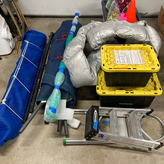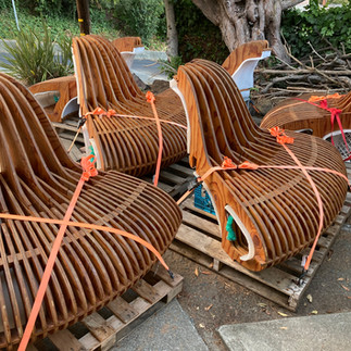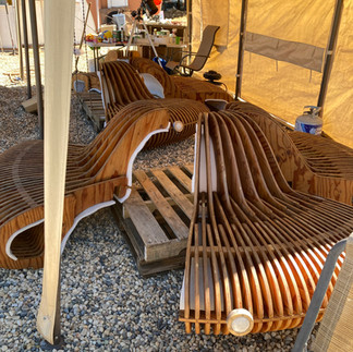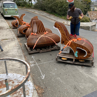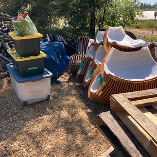 I packed up the hardware, spare parts, repair kit, tools, lights, etc. and moved the bench pieces and pallets into position in the driveway for easy loading on Wednesday, July 14th. We'll install the piece starting Friday, July 16th and finish on Saturday, July 17th. Hoping to be done in time to test it at sunset.